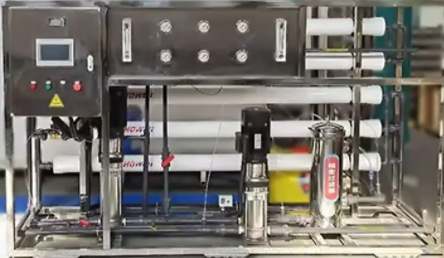 我們通常的二級反滲透設(shè)備的工藝流程是這樣的:原水箱→原水加壓泵→多介質(zhì)過濾器→活性炭過濾器→軟水器→保安過濾器→第一級反滲透機→第二級反滲透機→儲水罐→純水輸送泵→用水點。我們二級反滲透設(shè)備這樣工藝流程的設(shè)計主要是依舊了對原水中雜質(zhì)去除難易程度來的。